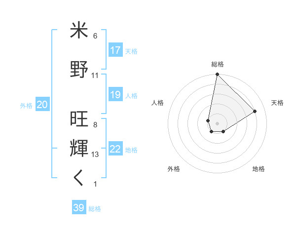 米野 旺輝くさんの総格は39画の5点!