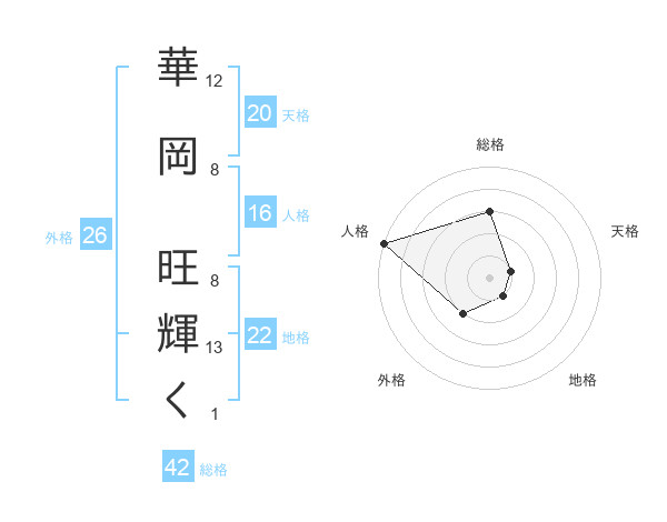 華岡 旺輝くさんの天格は20画の1点!