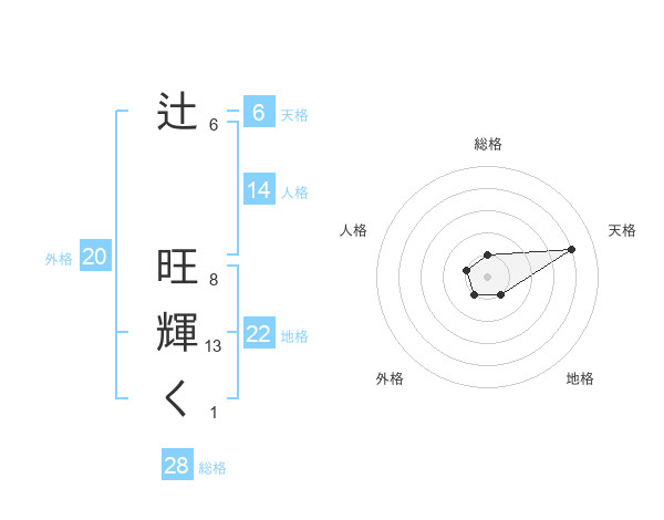 辻 旺輝くさんを姓名の画数から五運を鑑定