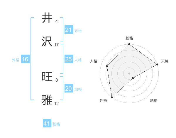 井沢 旺雅さんの天格は21画の5点!