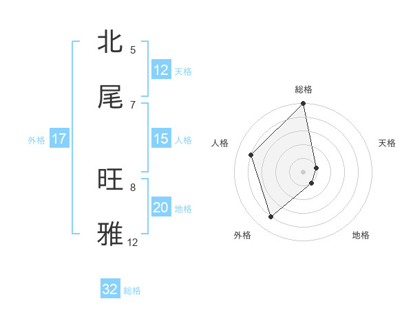 北尾 旺雅さんの総格は32画の5点!