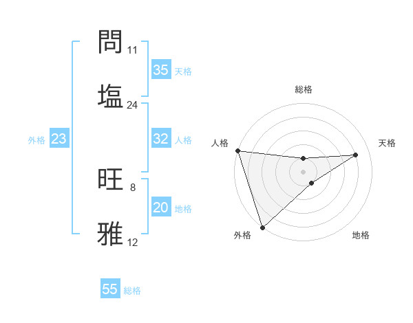 問塩 旺雅さんを姓名の画数から五運を鑑定
