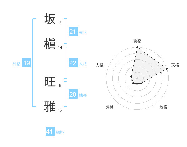 坂槇 旺雅さんを姓名の画数から五運を鑑定