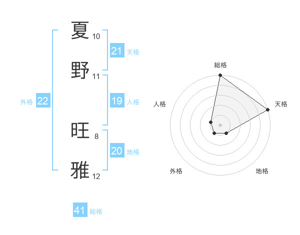 夏野 旺雅さんを姓名の画数から五運を鑑定