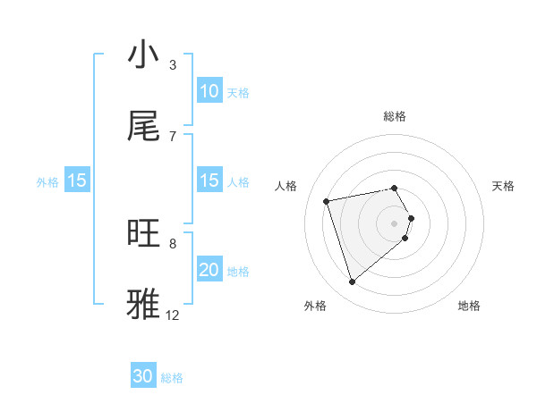小尾 旺雅さんの総格は30画の2点!