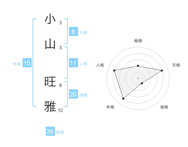 小山 旺雅さんを姓名の画数から五運を鑑定
