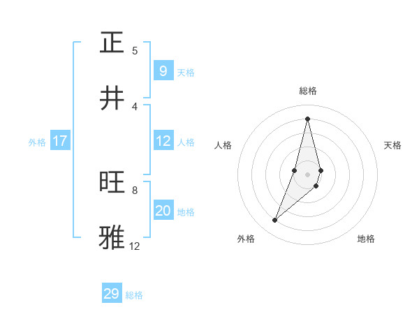 正井 旺雅さんの総格は29画の4点!