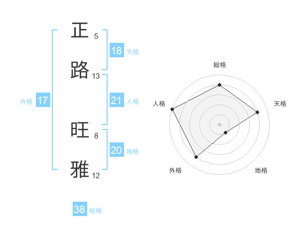 正路 旺雅さんを姓名の画数から五運を鑑定