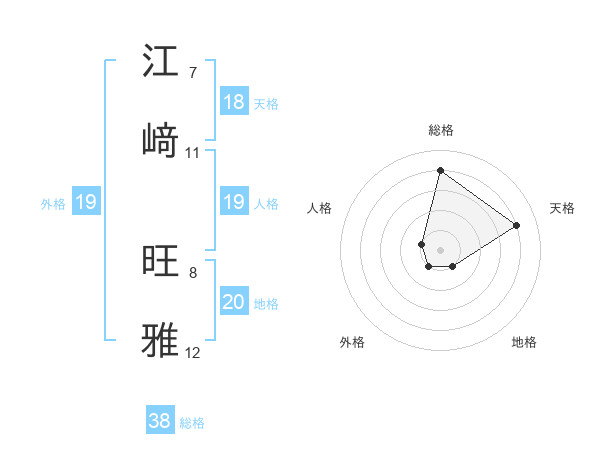 江﨑 旺雅さんの総格は38画の4点!