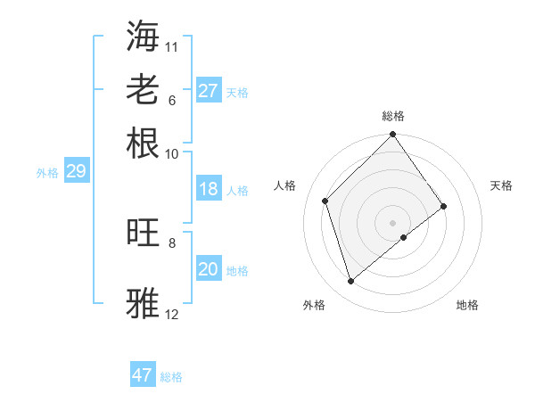 海老根 旺雅さんを姓名の画数から五運を鑑定