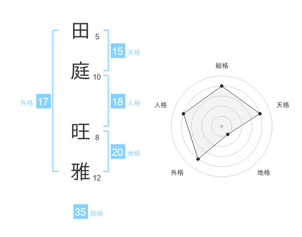 田庭 旺雅さんの総格は35画の4点!