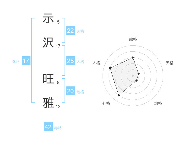 示沢 旺雅さんの外格は17画の4点!