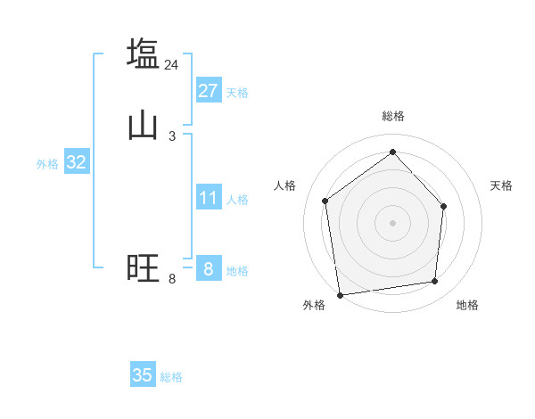 塩山 旺さんの総格は35画の4点!