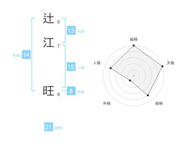 辻江 旺さんの総格は21画の5点!