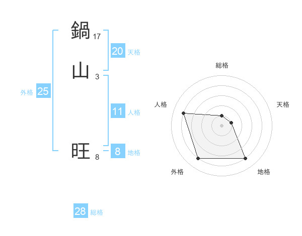 鍋山 旺さんの外格は25画の4点!