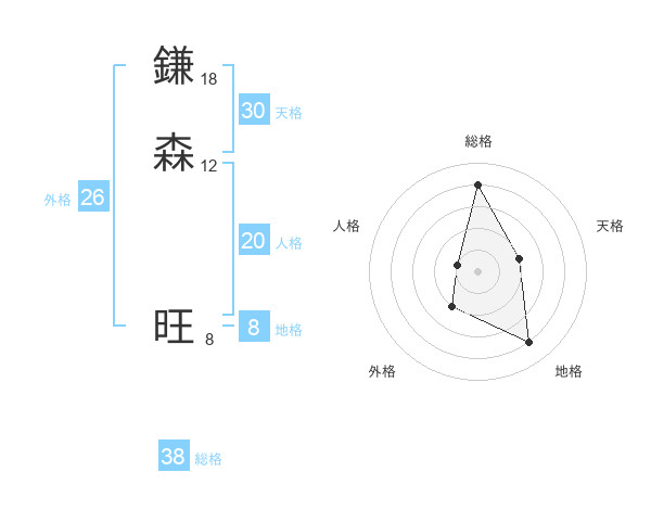 鎌森 旺さんの総格は38画の4点!