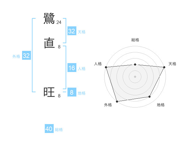 鷺直 旺さんの天格は32画の5点!