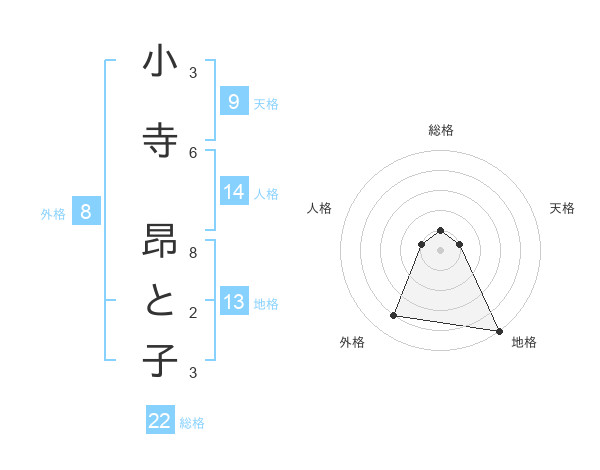 小寺 昂と子さんの地格は13画の5点!