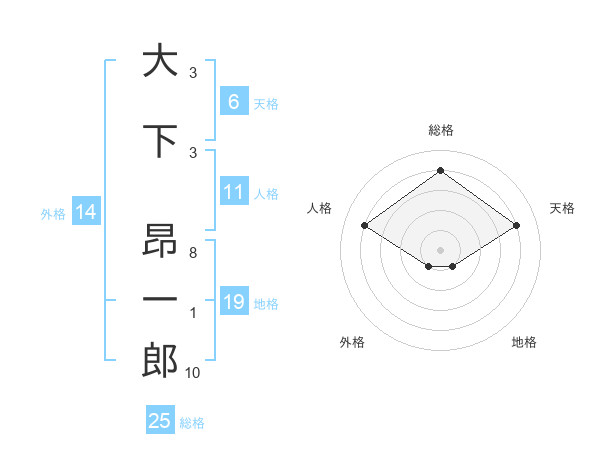 大下 昂一郎さんを姓名の画数から五運を鑑定