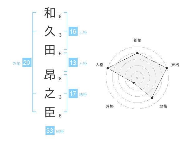 和久田 昂之臣さんを姓名の画数から五運を鑑定