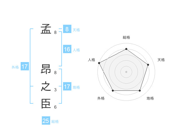 孟 昂之臣さんの天格は8画の4点!