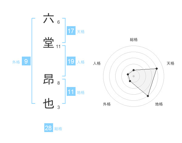 六堂 昂也さんの天格は17画の4点!