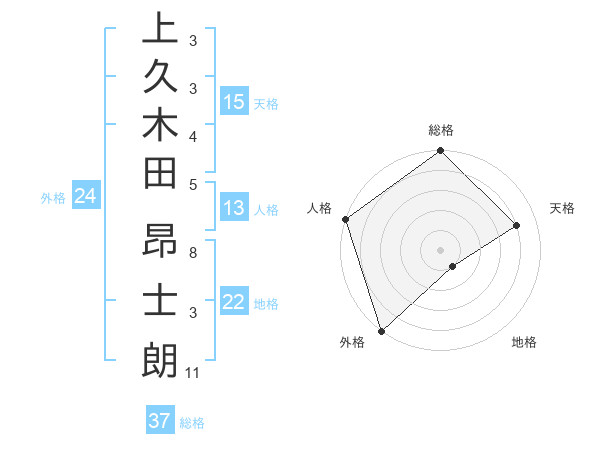 上久木田 昂士朗さんの総格は37画の5点!