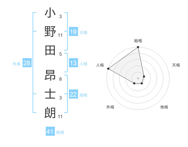 小野田 昂士朗さんの総格は41画の5点!