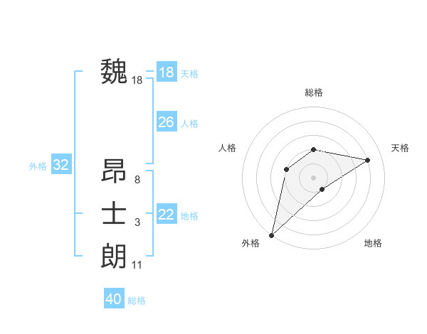 魏 昂士朗さんの総格は40画の2点!
