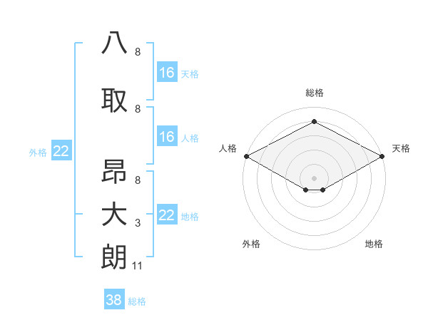 八取 昂大朗さんの総格は38画の4点!
