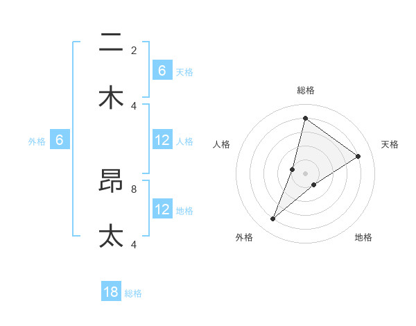 二木 昂太さんの総格は18画の4点!