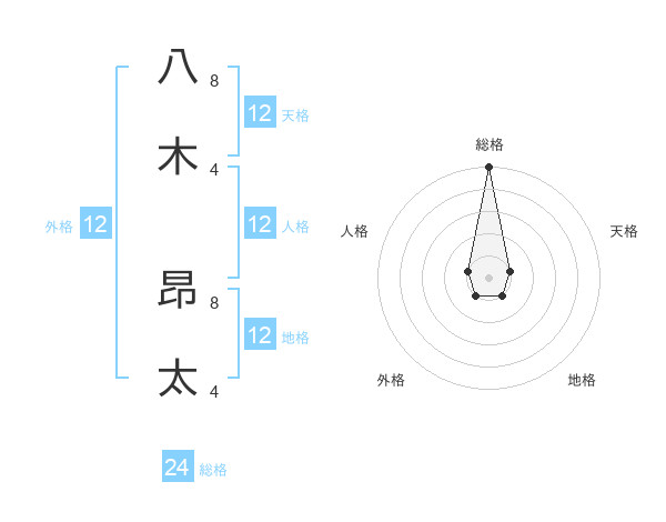 八木 昂太さんの総格は24画の5点!