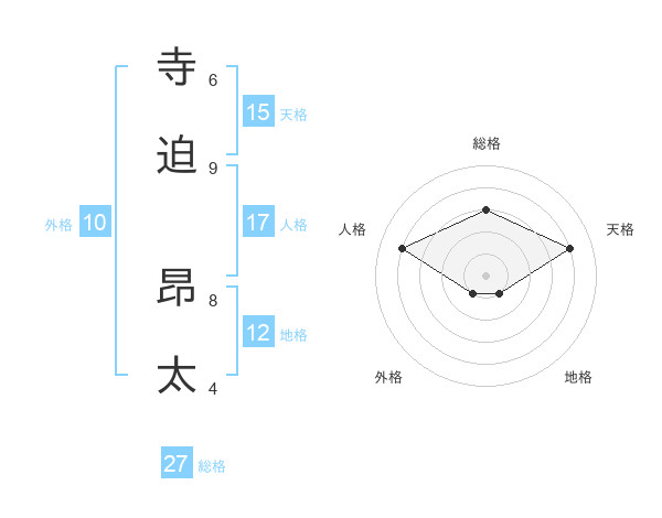 寺迫 昂太さんの総格は27画の3点!