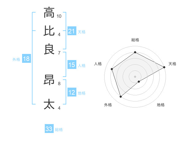 高比良 昂太さんの天格は21画の5点!