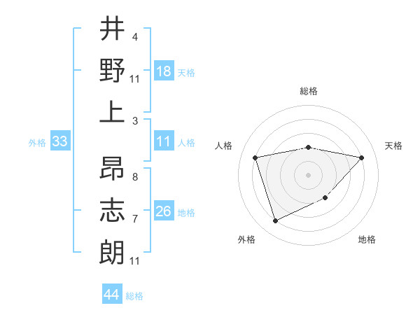 井野上 昂志朗さんを姓名の画数から五運を鑑定