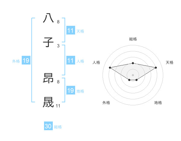 八子 昂晟さんを姓名の画数から五運を鑑定