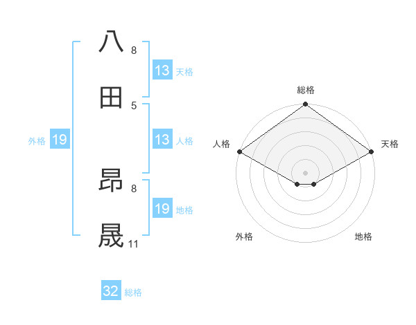 八田 昂晟さんの総格は32画の5点!