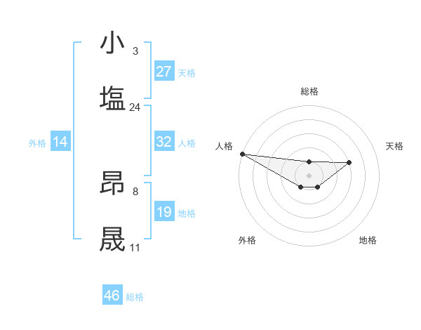 小塩 昂晟さんの総格は46画の1点!