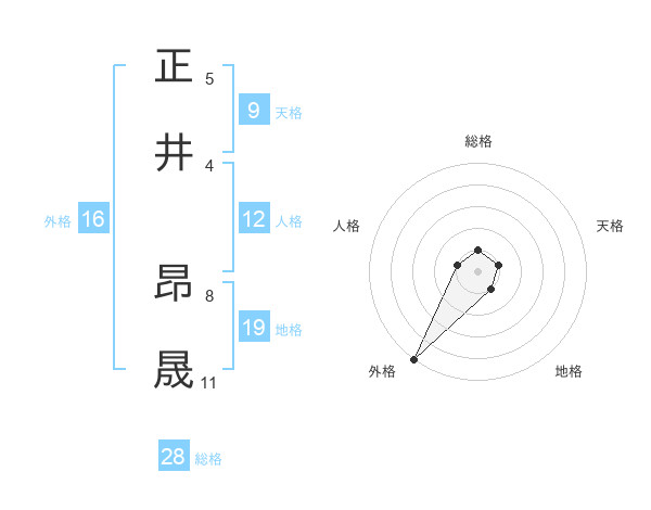正井 昂晟さんを姓名の画数から五運を鑑定