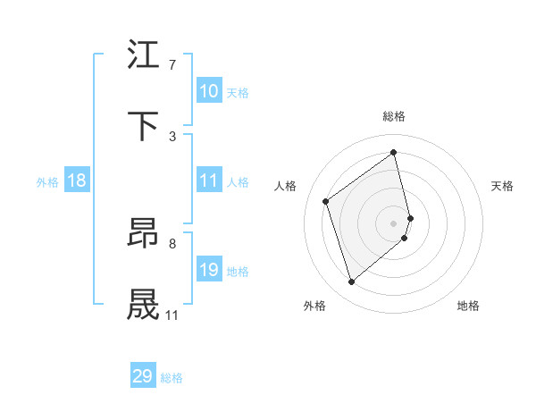 江下 昂晟さんを姓名の画数から五運を鑑定