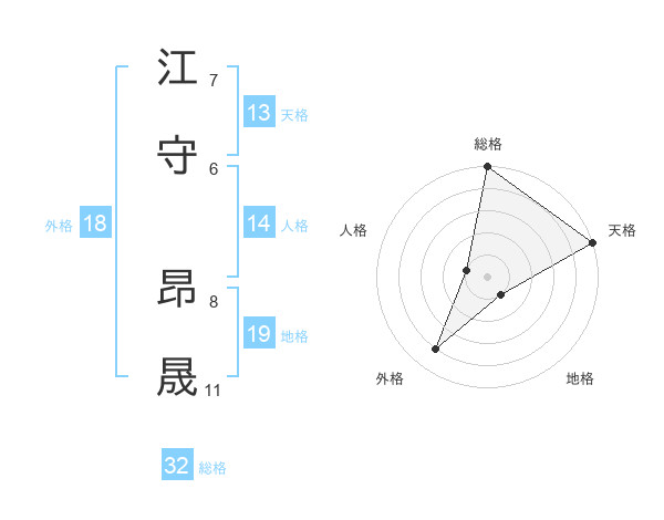 江守 昂晟さんの天格は13画の5点!