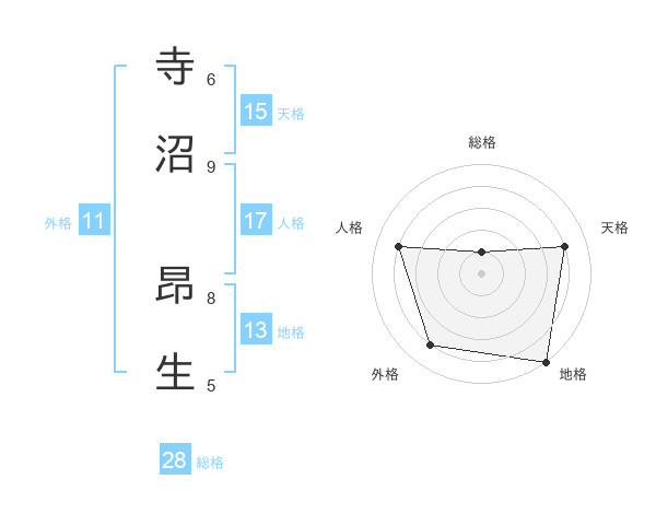 寺沼 昂生さんの総格は28画の1点!