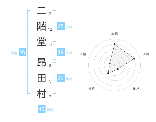 二階堂 昂田村さんの天格は25画の4点!