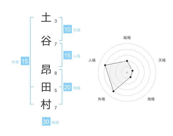 土谷 昂田村さんを姓名の画数から五運を鑑定