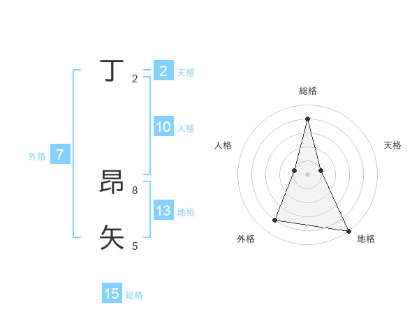 丁 昂矢さんの総格は15画の4点!