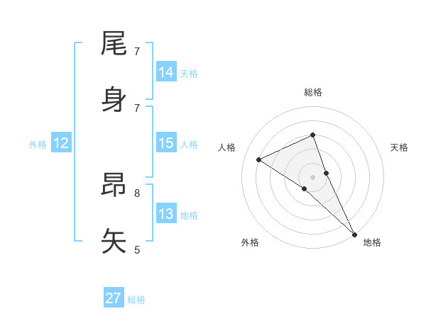 尾身 昂矢さんの総格は27画の3点!