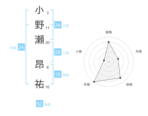 小野瀬 昂祐さんを姓名の画数から五運を鑑定