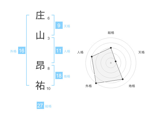 庄山 昂祐さんを姓名の画数から五運を鑑定