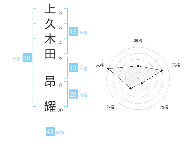 上久木田 昂耀さんの総格は43画の2点!