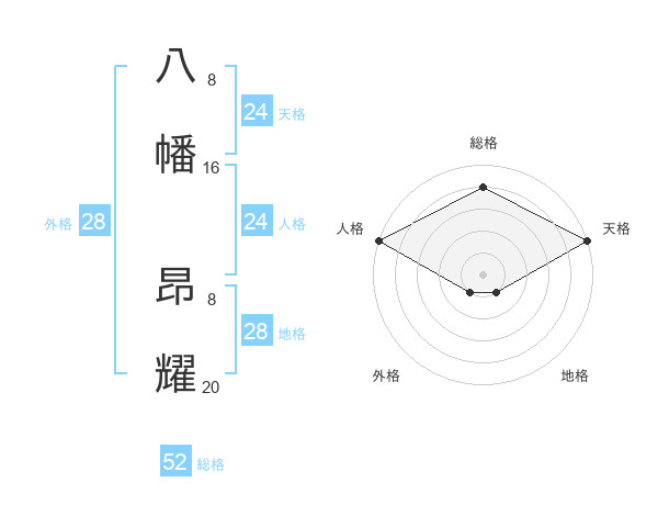 八幡 昂耀さんの総格は52画の4点!